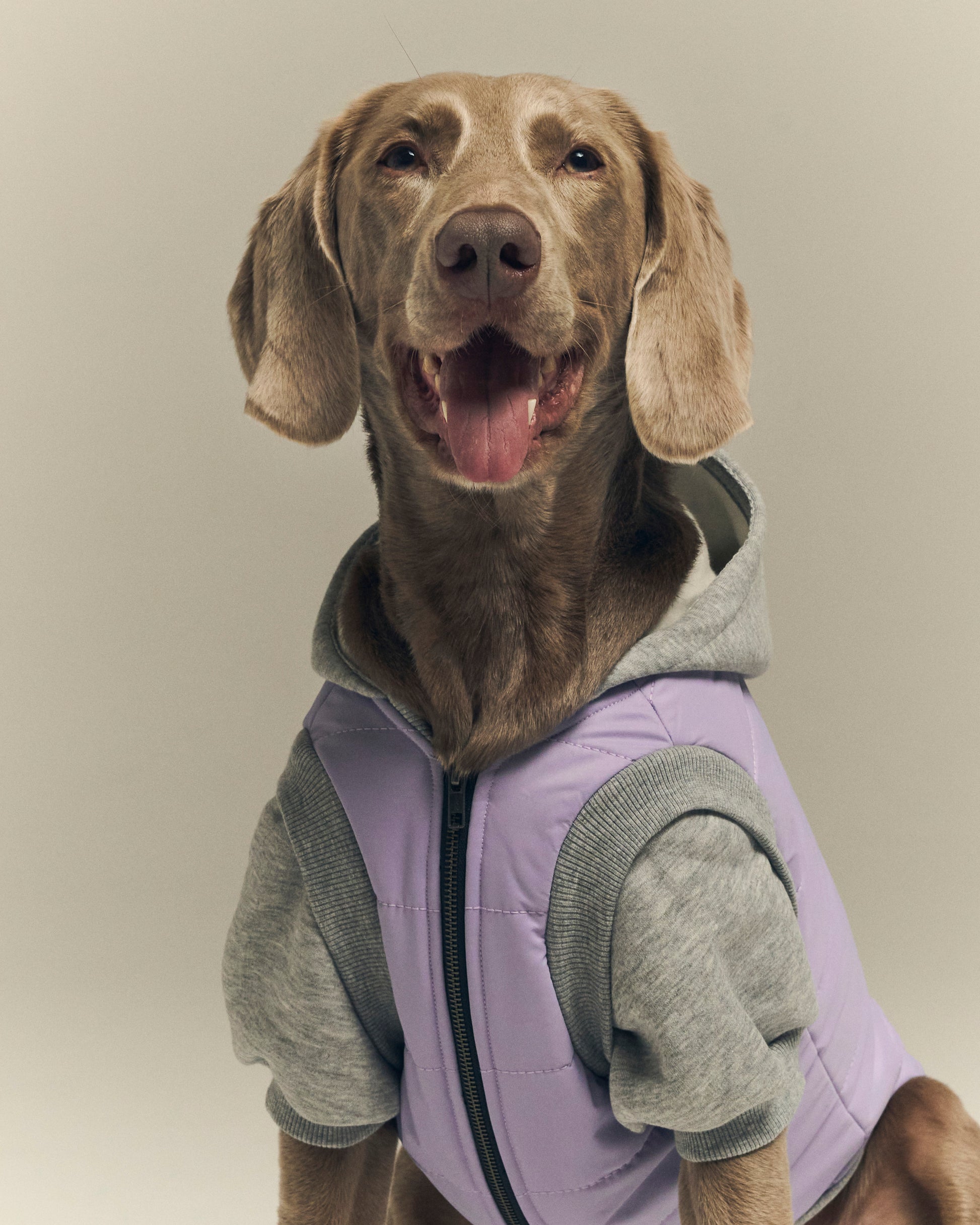 Her favorite piece, the puffer jacket, is now reimagined in a soft lilac tone.